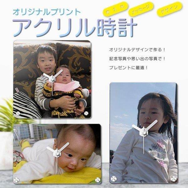 アクリル時計 正方形 長方形 オーダーメイド 子供の写真 イラスト 名入れ ペット 写真 プレゼントオリジナルデザイン