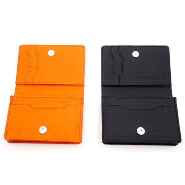 カードケース(名刺ケース)のボディは汚れがつきにくいPUレザーを使用しています。本革のような高級感があり手触りの良い素材のケースです。選べる2色