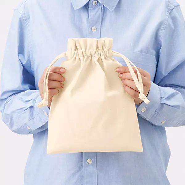 ・綿100%で作られた巾着は、素材に天然のままの綿花を使用しているため、藁や草木のような匂いがある場合があります。