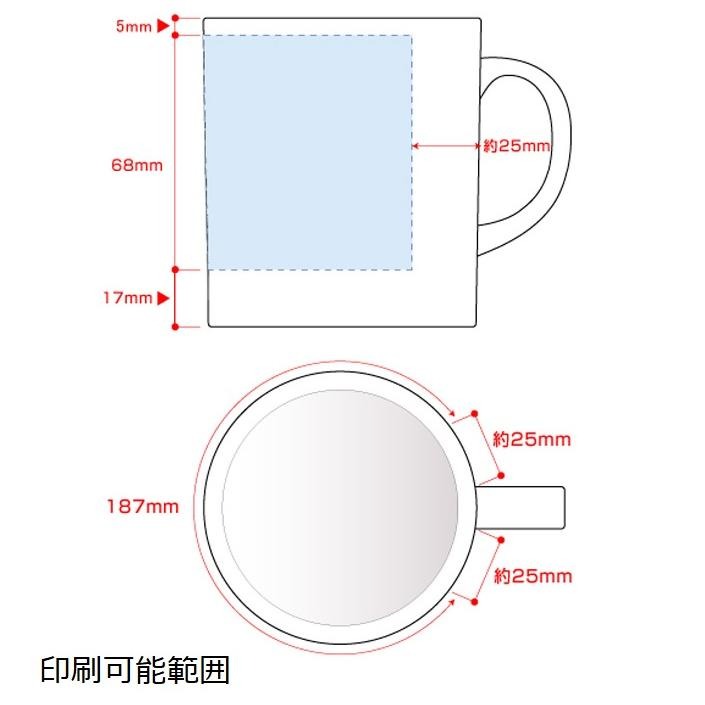 ※昇華転写は白インクがないため、デザインデーターの白部分はマグカップ本体の色になります。【サイズ】