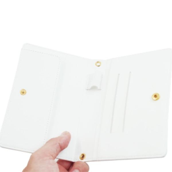 パスポートケースの内側には、カードやペンなどを収納できるポケット付きです。旅の途中でなにかと必要になるアイテムを便利に収納できます。フライトチケットの収納にも便利にお使いいただけます。盗難や紛失防止のボタン付き