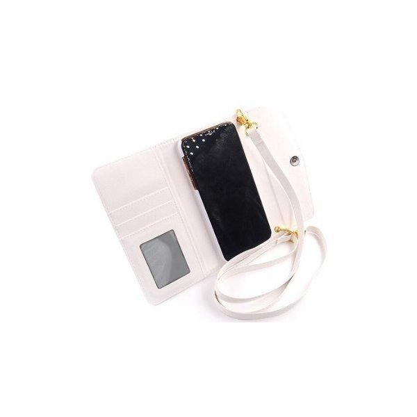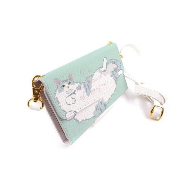 カードやお札の入る収納ポケット、身だしなみチェックのミラー、持ち運びに便利なハンドストラップなど、便利な機能満載です。ピタッと閉まるマグネットボタン