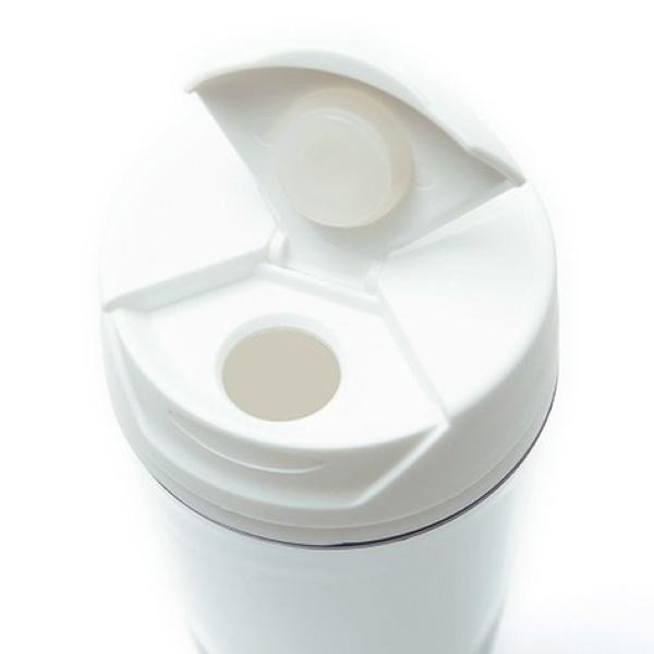 フタが大きく開きフラットな構造で、飲む時に鼻に当たりにくい設計です。