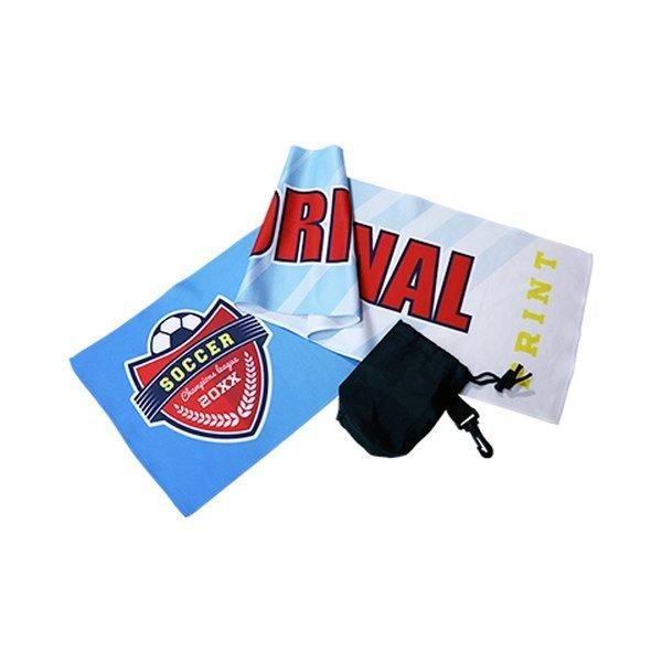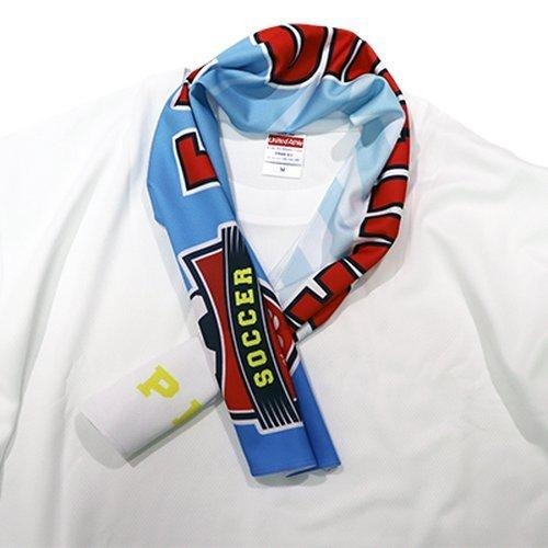 吸水性抜群の薄手ポリエステル素材を使用しており、スポーツ観戦や屋外活動での熱中症対策に重宝します。持ち運びも快適な「マフラー型&巾着付き」