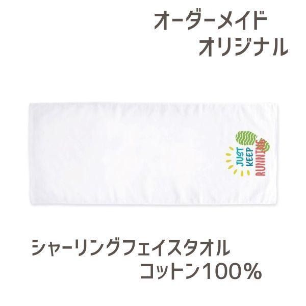 イベントで実用的なノベルティとしても喜ばれます。表側(印刷面)はシャーリング、裏側はパイルになっています。肌当たり柔らかなシャーリングフェイスタオルにフルカラーのワンポイント印刷をお入れします。